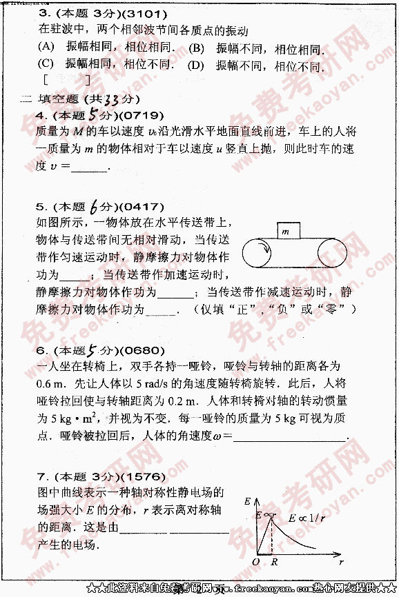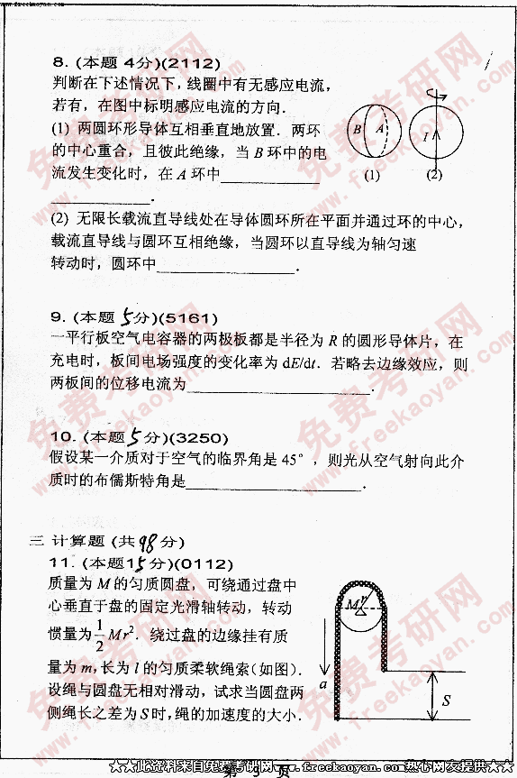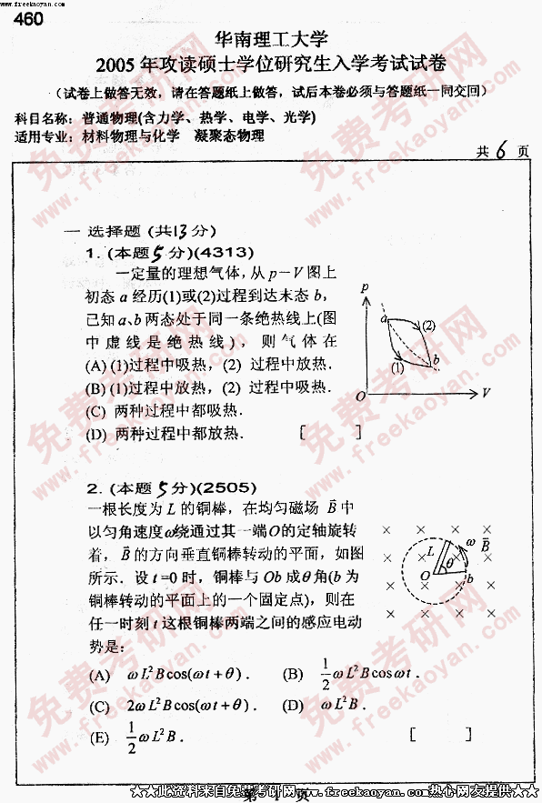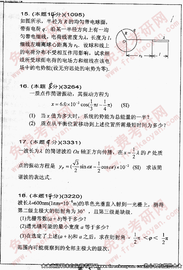 华南理工大学2005年考研真题-普通物理含力、热、电、光学