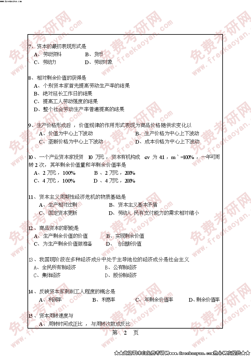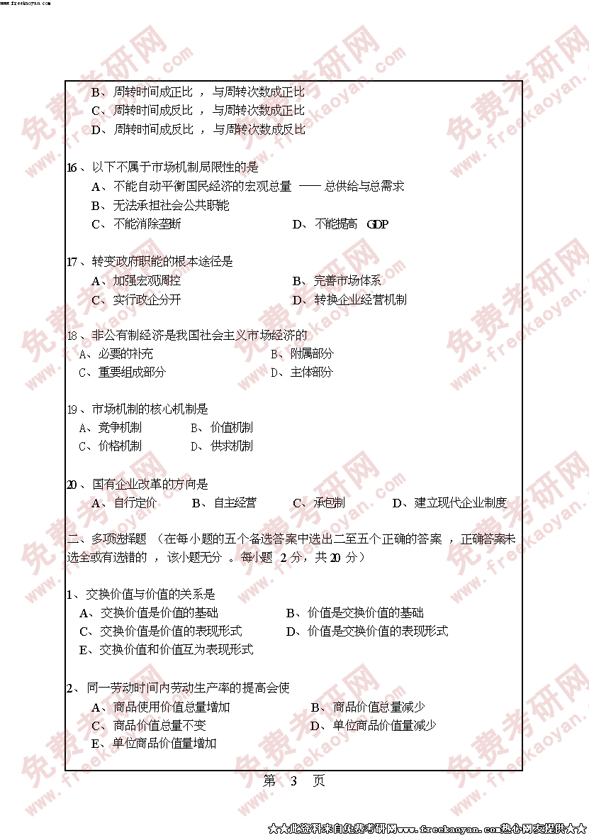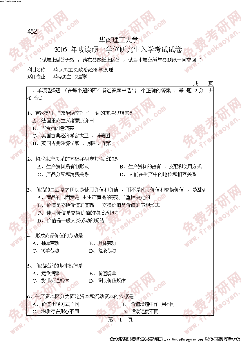 华南理工大学2005年考研真题-马克思主义政治经济学原理