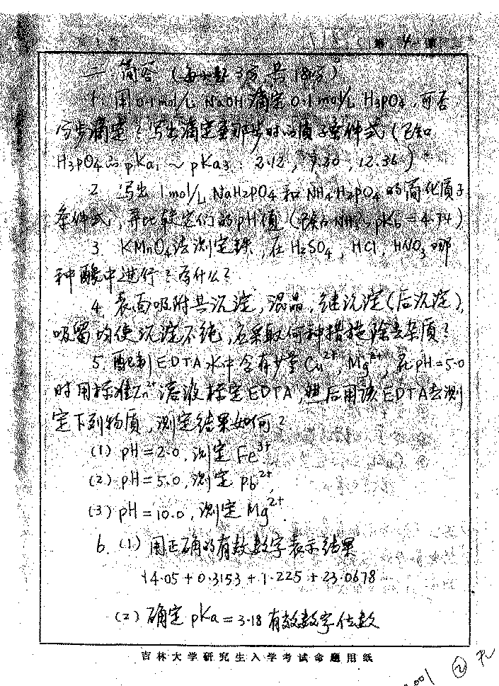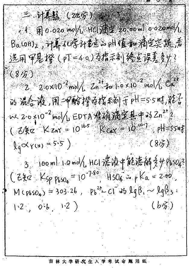 相关话题/考研真题 吉林大学 分析化学 无机化学