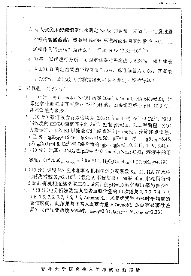 相关话题/考研真题 吉林大学 仪器 分析化学