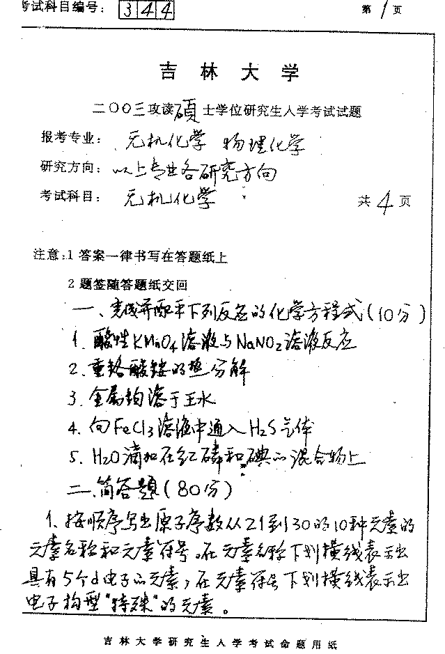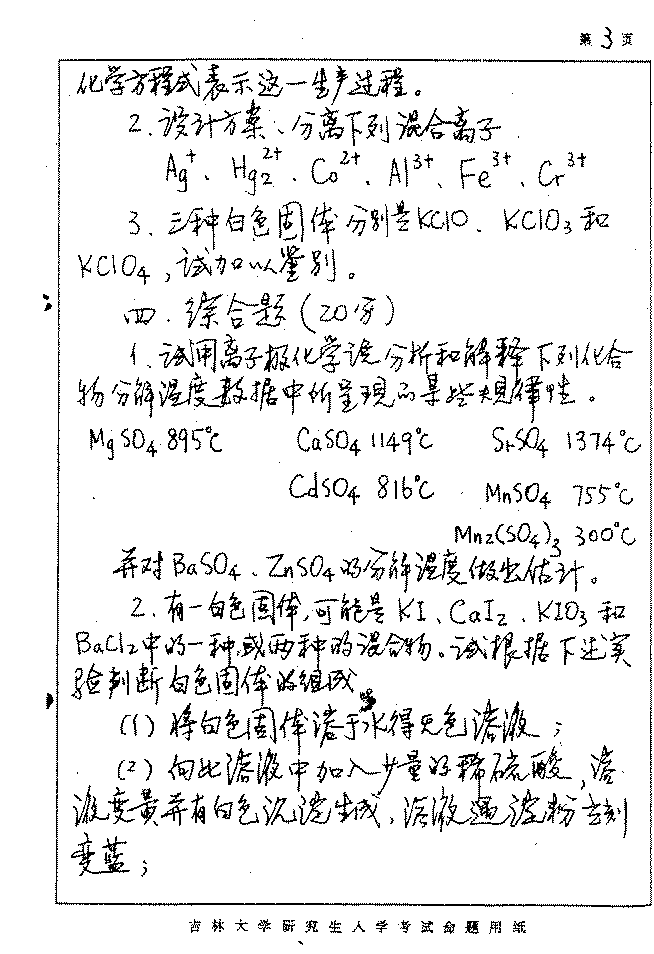 专业课考研经验 本站小编 FreeKaoyan 2018-01-22吉林大学2000年考研真题-无机化学(含分析化学)