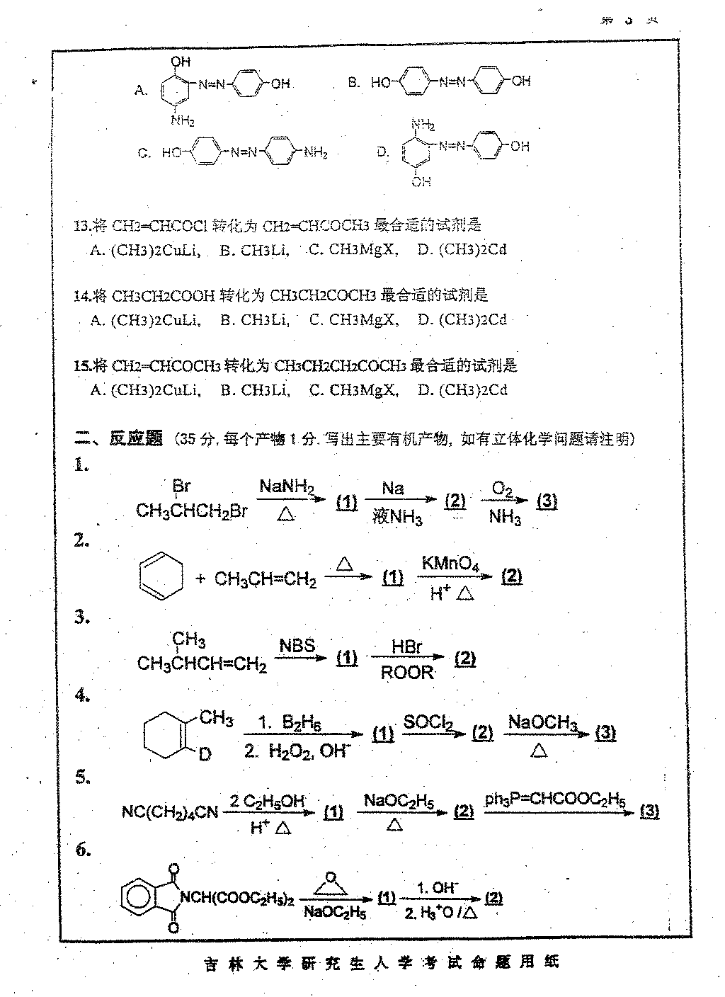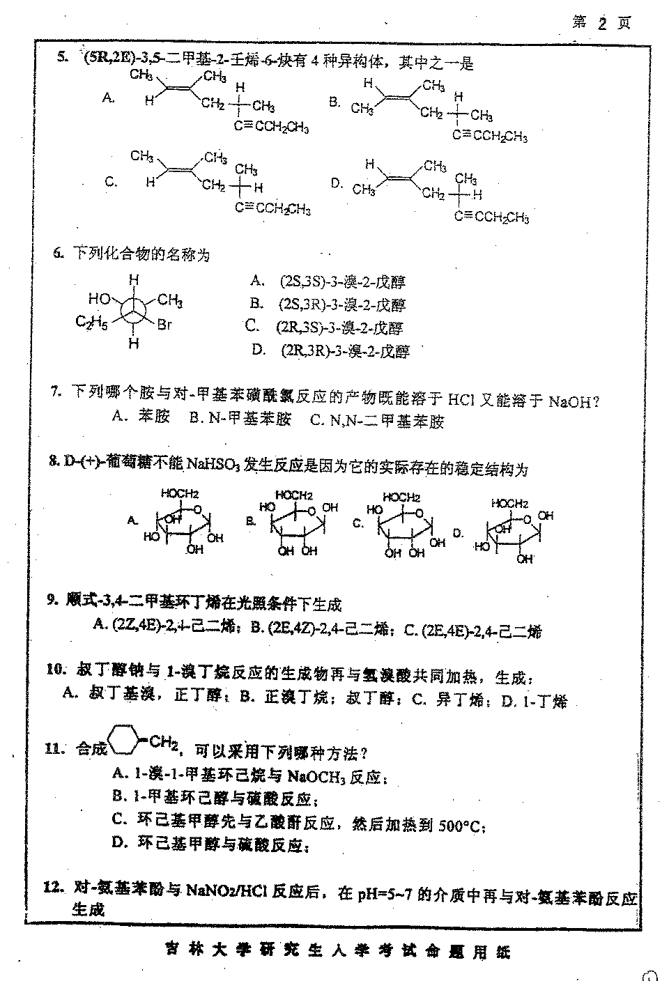 专业课考研经验 本站小编 FreeKaoyan 2018-01-22吉林大学2002年考研真题-有机化学