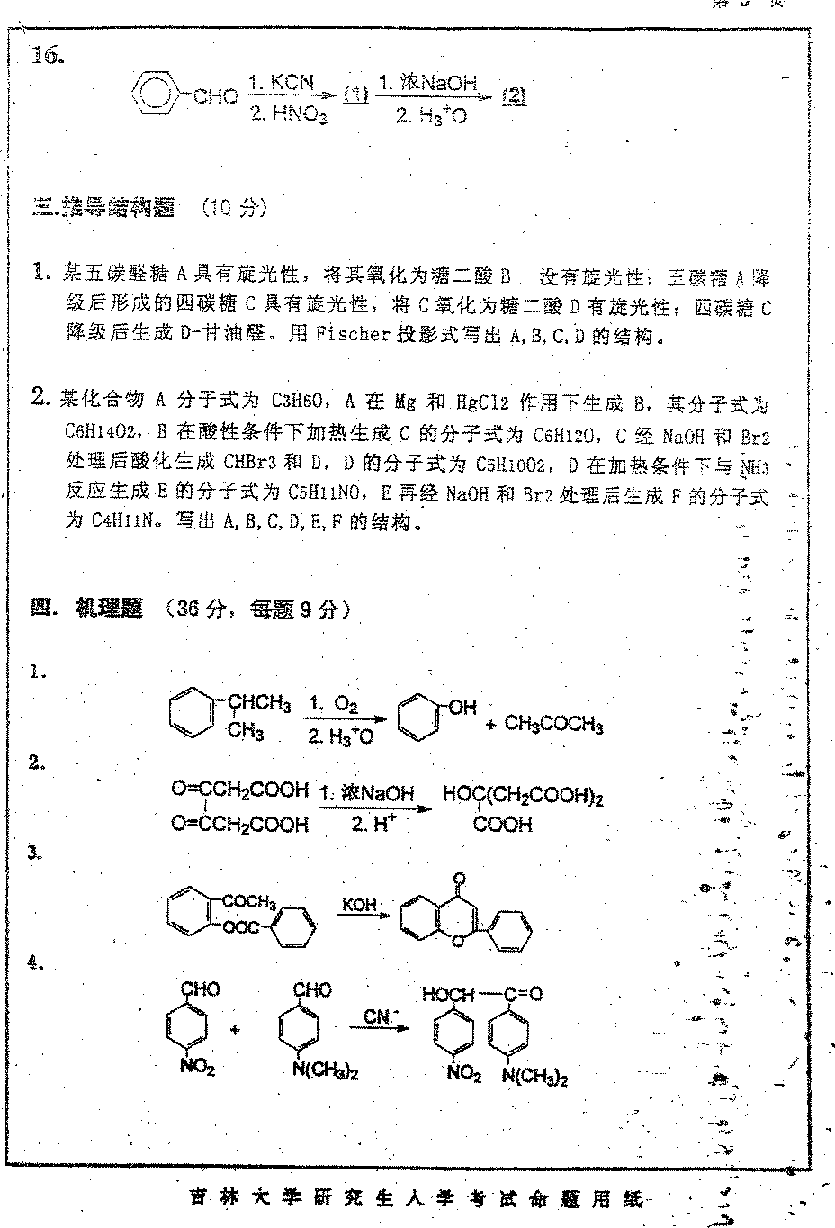 专业课考研经验 本站小编 FreeKaoyan 2018-01-22吉林大学1994年考研真题-有机化学