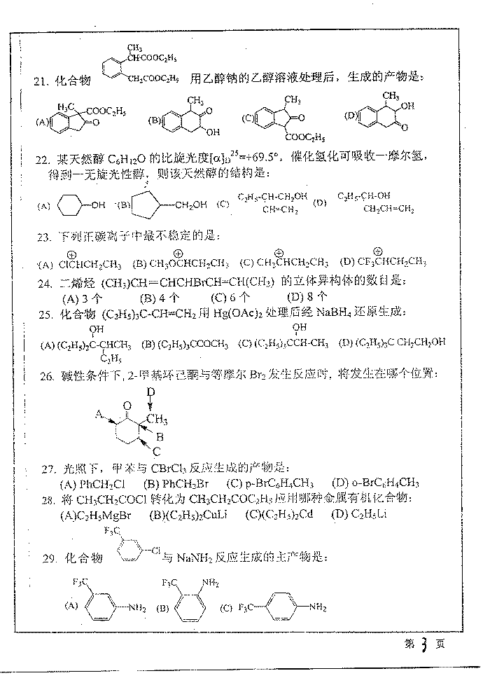 专业课考研经验 本站小编 FreeKaoyan 2018-01-22吉林大学2001年考研真题-有机化学