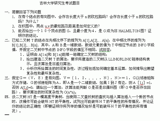 相关话题/考研真题 吉林大学 计算机 数据结构 综合