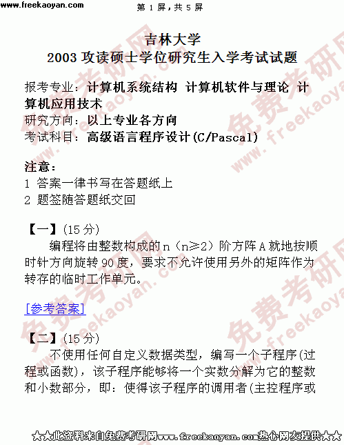 专业课考研经验 本站小编 FreeKaoyan 2018-01-22考研试题/*===========================================================================*//*程序名称:2004_1.c *//*程序目的:计算一个“零幺串”当中最长的零/幺串 *//*Writen by Apechn , ...