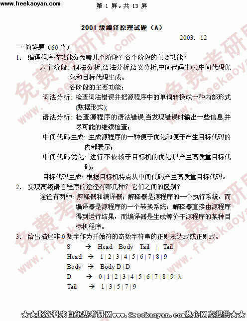 2003-1/*====================================================================================*//*函数名称:2003_1.c */ /*程序 ...