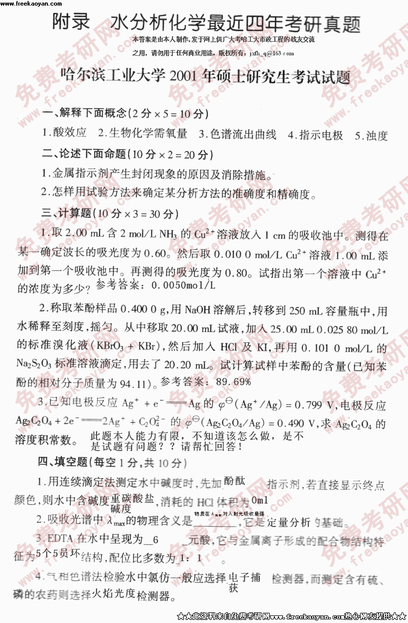 专业课考研经验 本站小编 FreeKaoyan 2018-01-22哈尔滨工业大学2001年硕士研究生入学考试数学分析下载 ...