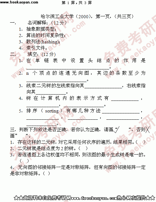 哈尔滨工业大学1999年硕士研究生入学考试高等代数下载 ...