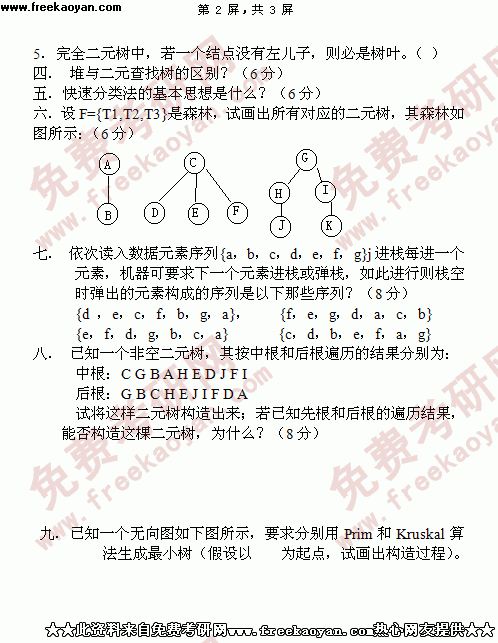 专业课考研经验 本站小编 FreeKaoyan 2018-01-22考试科目:操作系统报考专业:计算机系统结构、计算机软件与理论、计算机应用技术、模式识别与智能系统一、简答题:(共30分)1、什么是操作系统?它有什么基本特征?(6分)2、试比较进程和程序的区别。(6分)3、在用户的操作系统之间存在哪几种类型的接口?它们的主要功能是什么?(6分)4、解释下列概念(12 ...