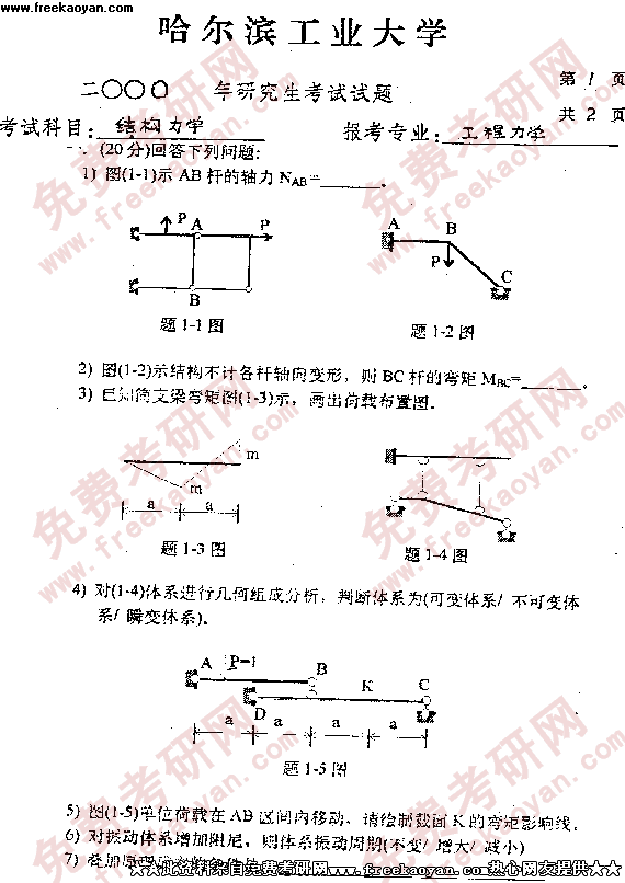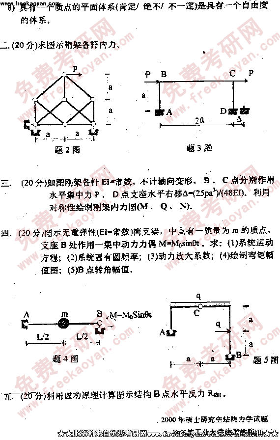 哈尔滨工业大学2000年考研真题-结构力学考研试题