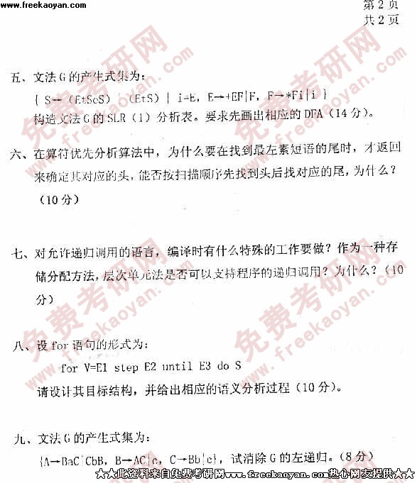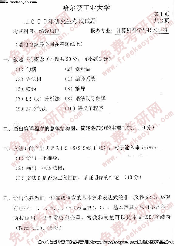 哈尔滨工业大学2000年考研真题-编译原理试题