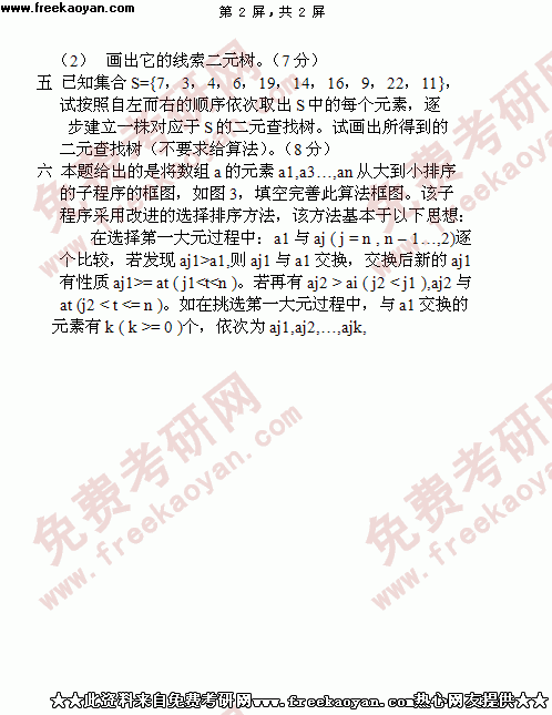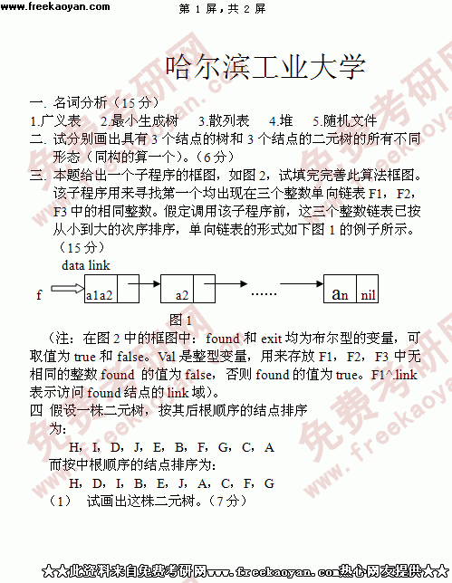 专业课考研经验 本站小编 FreeKaoyan 2018-01-22哈尔滨工业大学2000年考研真题-数据结构试题与分析