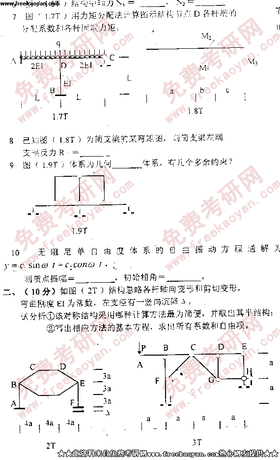 哈尔滨工业大学2000年考研真题-结构力学考研试题