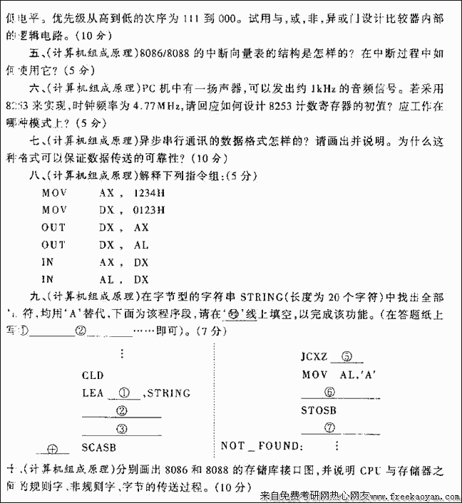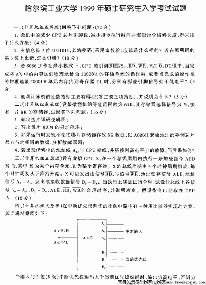 哈尔滨工业大学1999年考研真题-计算机原理试题