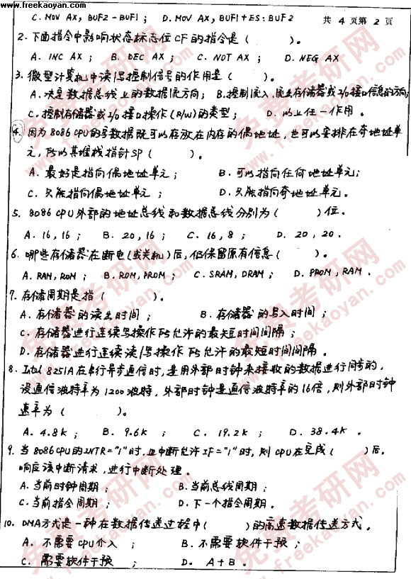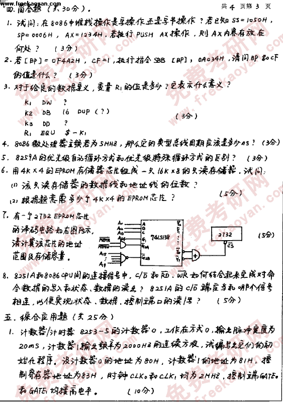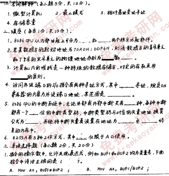 哈尔滨工程大学2000年考研真题-微机计算机技术与应用