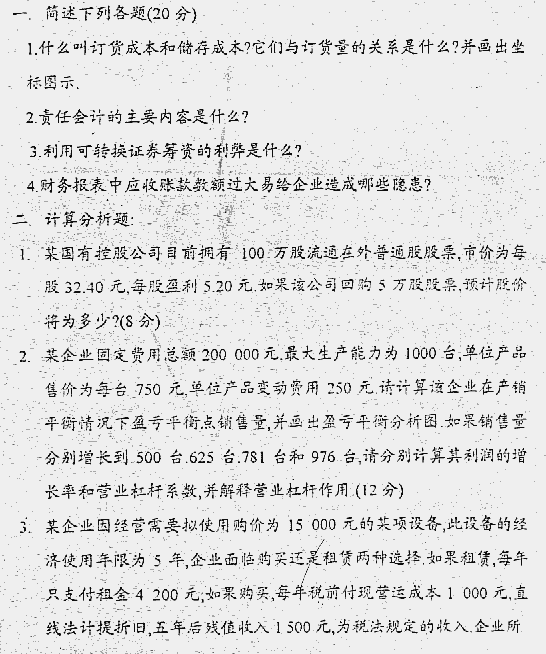 东北大学2000年考研真题-财务管理与管理会计