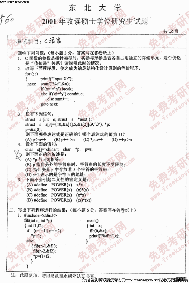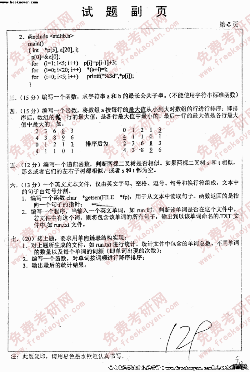 东北大学2003年考研真题-C语言程序设计与数据结构