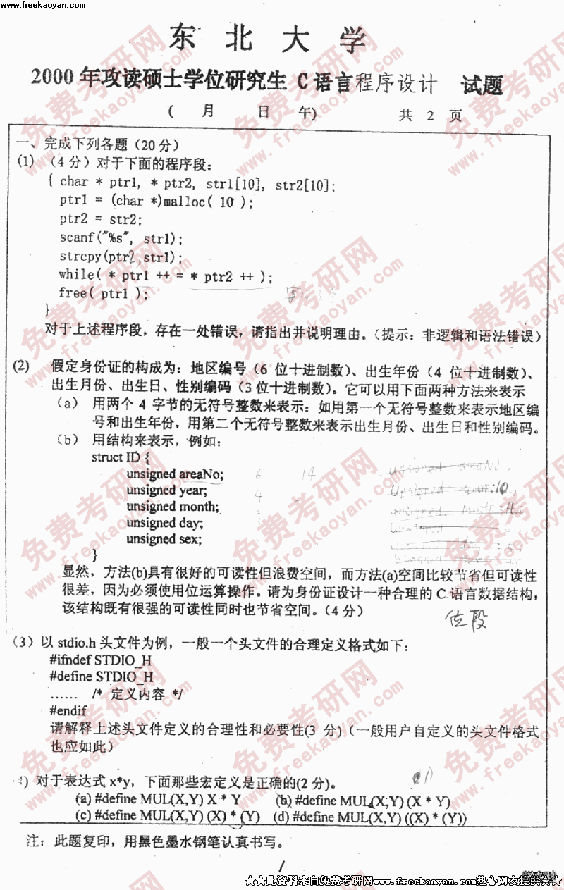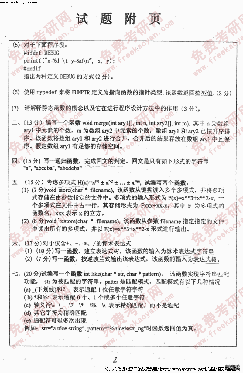 东北大学2003年考研真题-C语言程序设计与数据结构