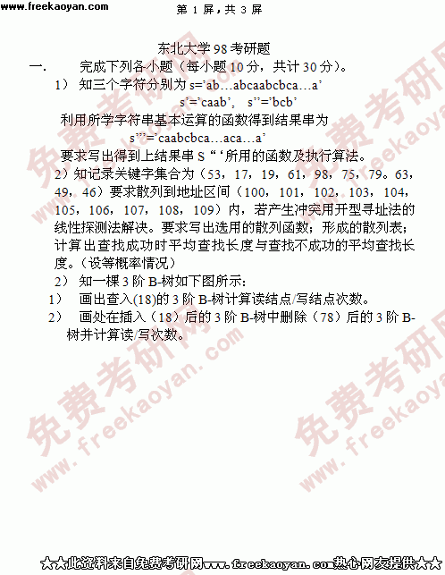 专业课考研经验 本站小编 FreeKaoyan 2018-01-22东北大学1998年考研真题-数据结构答案