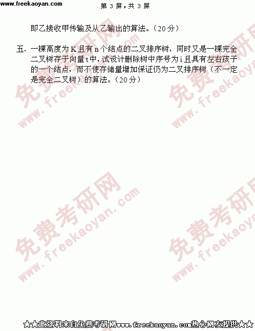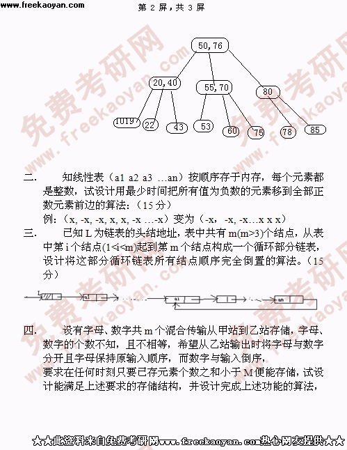 专业课考研经验 本站小编 FreeKaoyan 2018-01-22东北大学2000年考研真题-数据结构答案