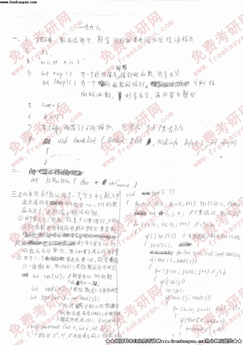 东北大学1996年考研真题-c语言答案