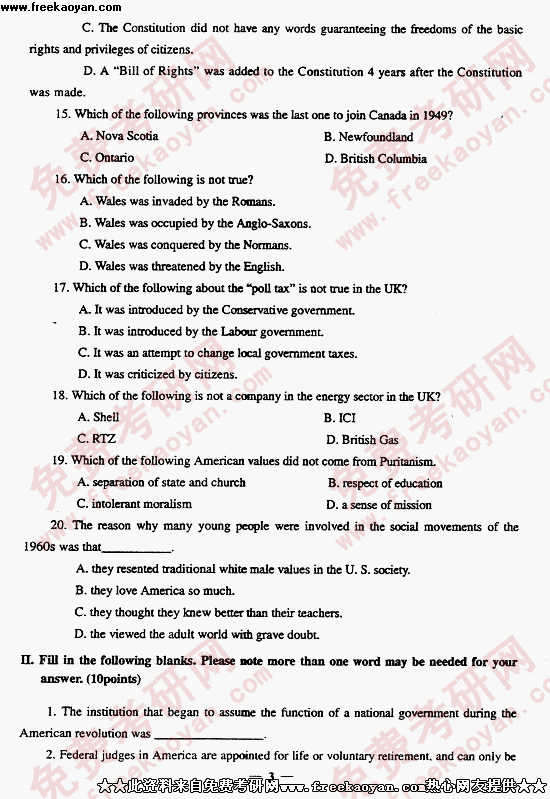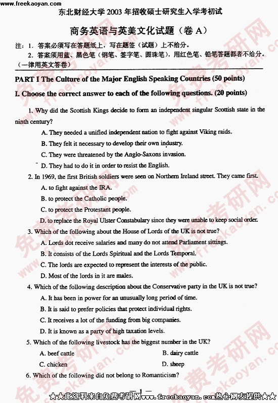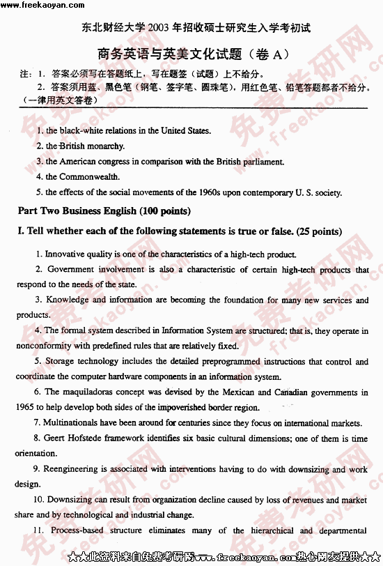 专业课考研经验 本站小编 FreeKaoyan 2018-01-22东北财经大学 2003 年招收硕士研究生入学考试初试 旅 游 管 理 试 题 ( B 卷) ? 名词解释(每个词 3 分,共 24 分) ? 管理控制 ? 事业部制 ? 旅游流 ? 旅游交往情景模型 ? 生态旅游 ? 旅游体验 ? 直复营销 ? 关系营销 ? 单向选择题(每小题 1 分,共 6 分) ...
