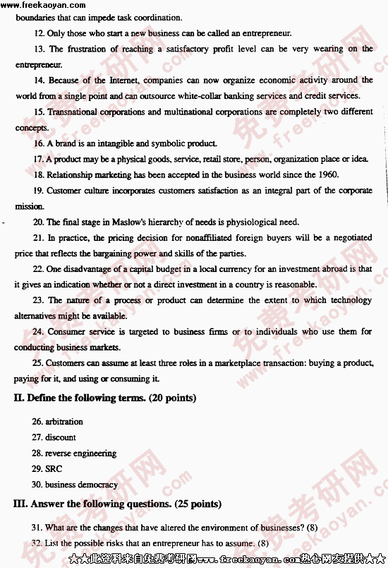 专业课考研经验 本站小编 FreeKaoyan 2018-01-221. 你认为电子商务面临的最主要的障碍是什么?如何克服这些障碍?(25分)2. 中国与美国开展电子商务的时间相差不多,因此有人认为中国与美国的起点是一样的。你同意这种观点吗?为什么?(25分)3.举出几个在电子商务中经营失败的企业的例子?请说明它们为什么失败。(25分)4.为什么说注意力资源在网络经 ...