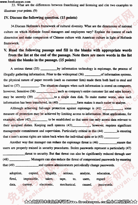 专业课考研经验 本站小编 FreeKaoyan 2018-01-22东北财经大学 2002 年攻读硕士学位研究生 旅游管理专业《管理学(含饭店管理)》试题( A 卷) ? 名词解释(每个名词 2 分,共计 20 分) ? 职务丰富化 ? 人本管理 ? 激励相容 ? 前馈控制 ? 管理理论丛林 ? 管理方格 ? 饭店联号 ? 饭店费用 ? 客源市场预测 ? PDCA ...