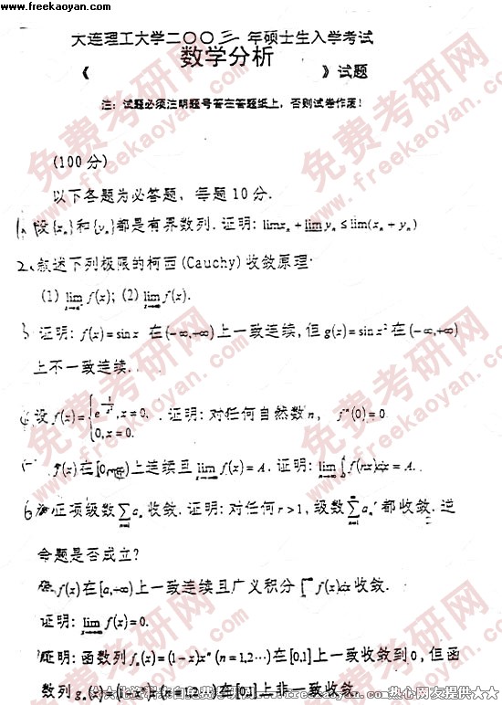 大连理工大学2005年硕士研究生入学考试数学分析以及解答下载地址下载 ...