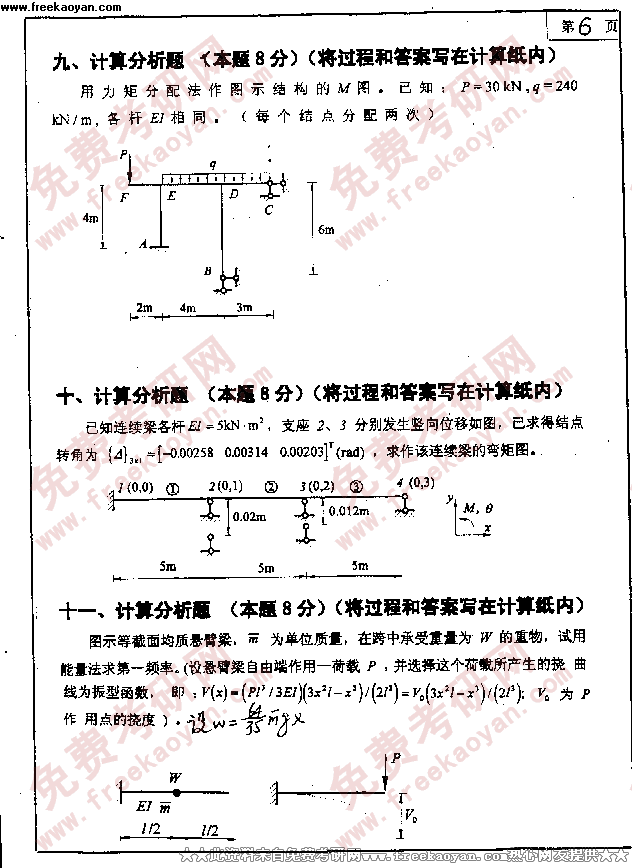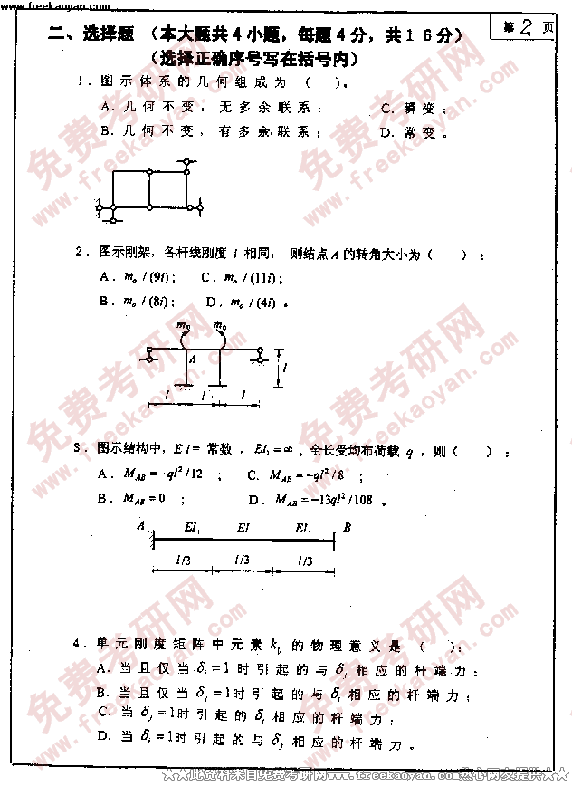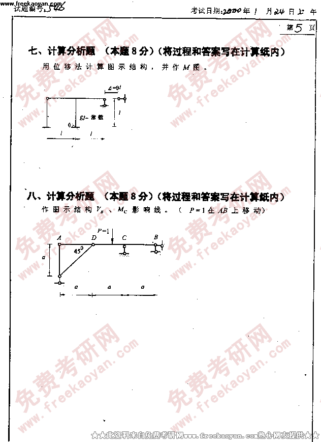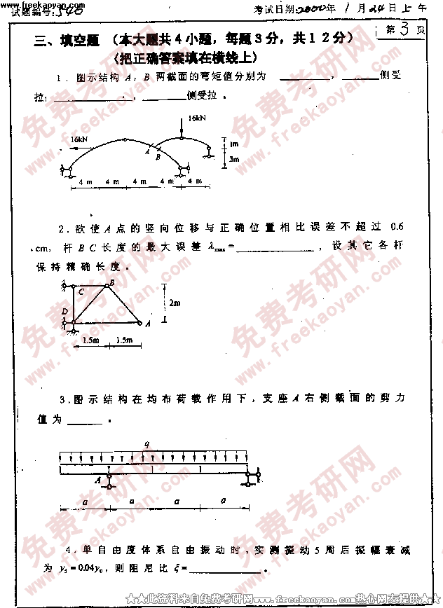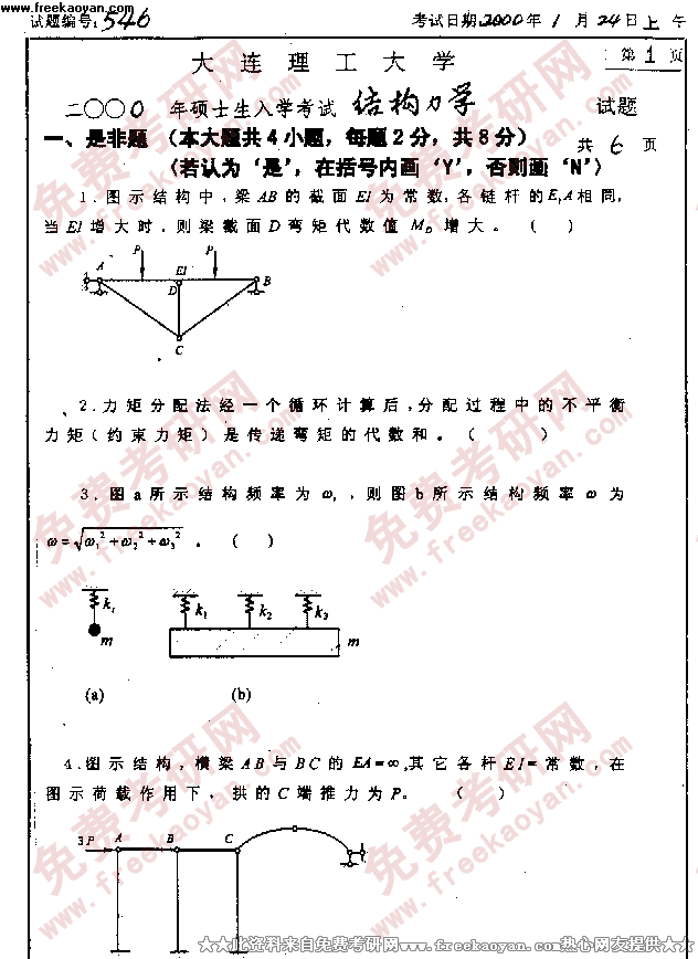 大连理工大学2000年考研真题-结构力学