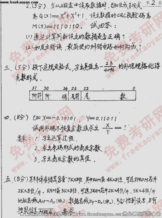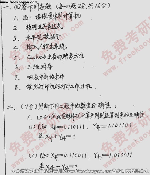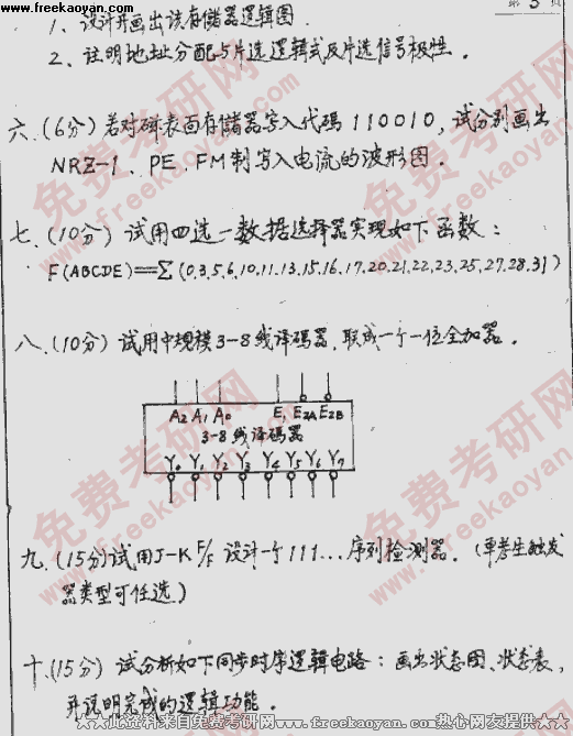 大连理工大学2000年考研真题-计算机组成原理与数字逻辑