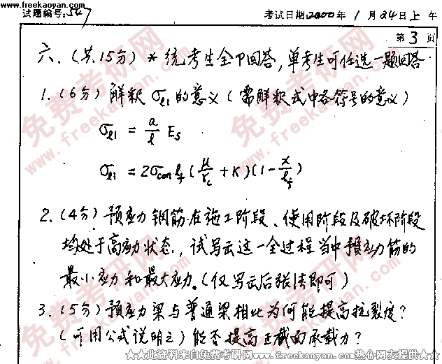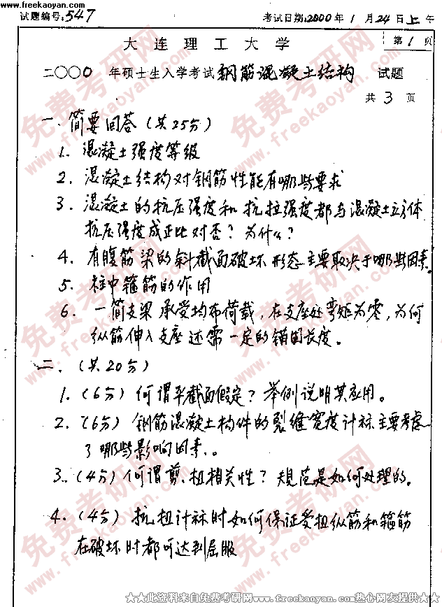 大连理工大学2000年考研真题-钢筋混凝土结构