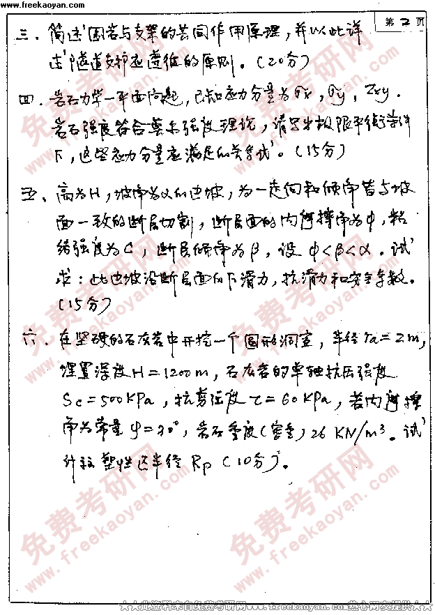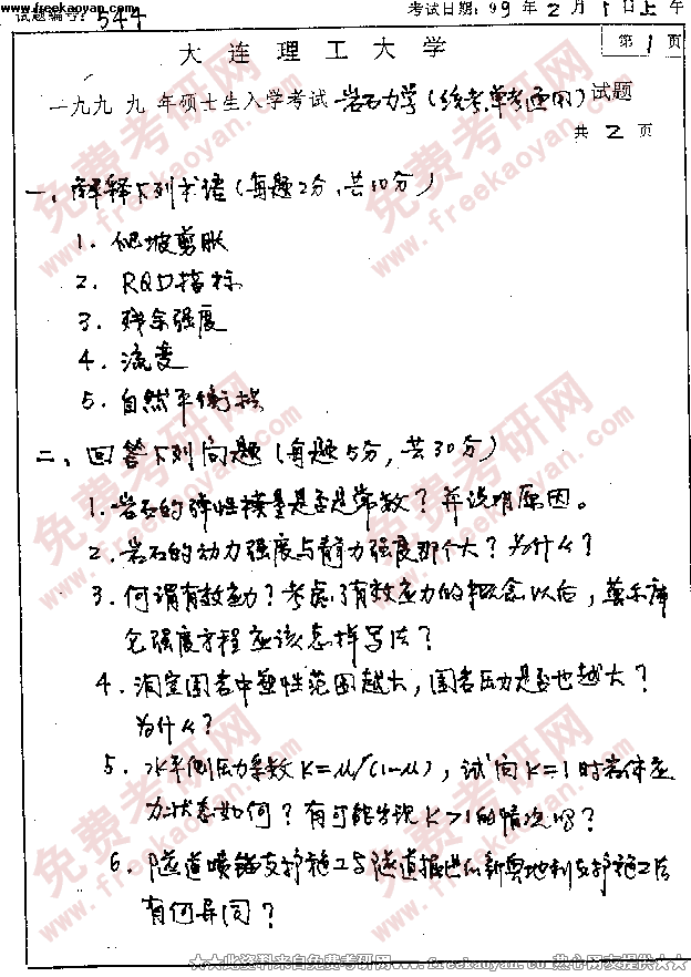 大连理工大学1999年考研真题-岩石力学