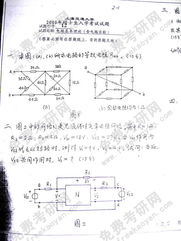 上海交通大学2000年考研真题-电路基本理论