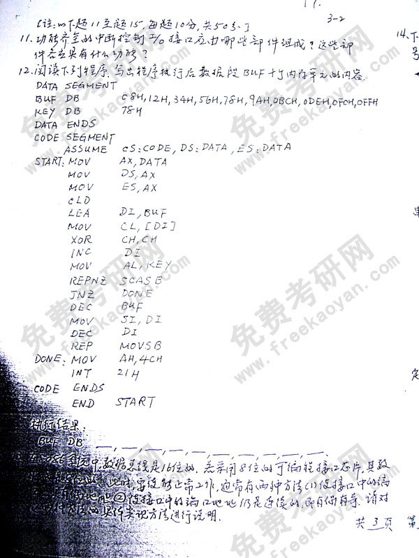 专业课考研经验 本站小编 FreeKaoyan 2018-01-22大连理工大学1999年考研真题-微机接口与通讯及程序设计