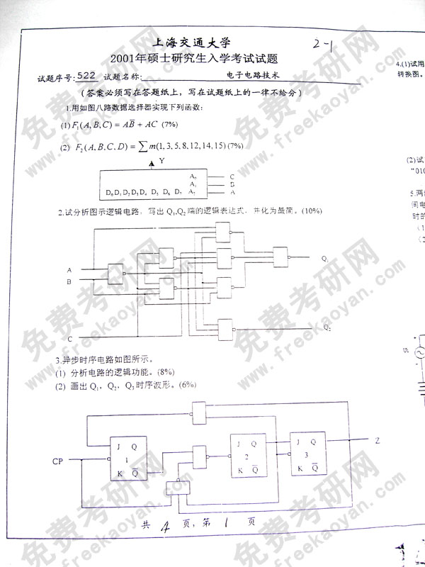 专业课考研经验 本站小编 FreeKaoyan 2018-01-22上海交通大学2001年考研真题-电路基本理论