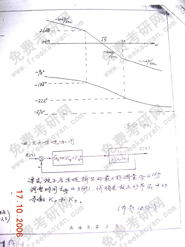 专业课考研经验 本站小编 FreeKaoyan 2018-01-22上海交通大学2000年考研真题-自动控制理论