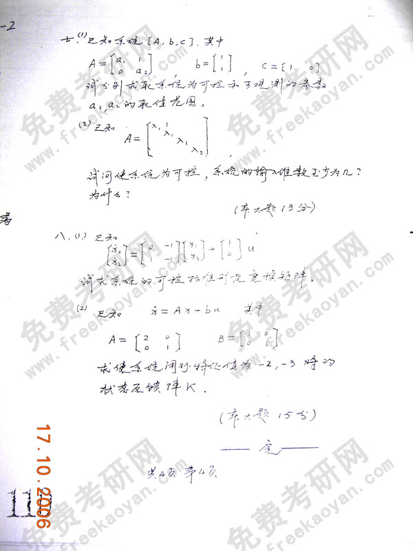 专业课考研经验 本站小编 FreeKaoyan 2018-01-22上海交通大学2000年考研真题-自动控制理论