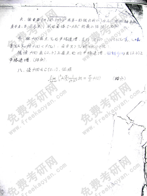专业课考研经验 本站小编 FreeKaoyan 2018-01-22上海交通大学2000年考研真题-数学分析