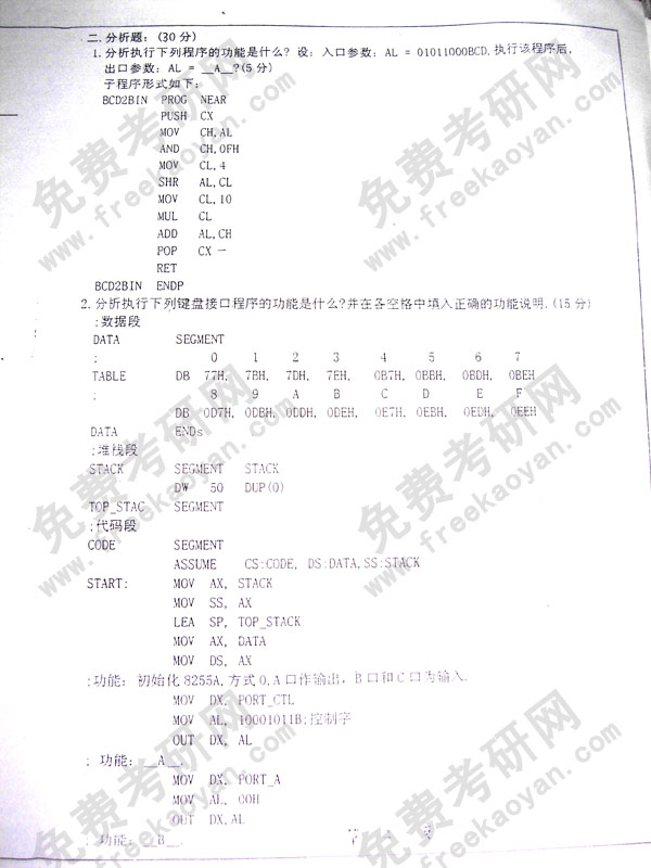 专业课考研经验 本站小编 FreeKaoyan 2018-01-22上海交通大学2000年考研真题-微型计算机原理应用