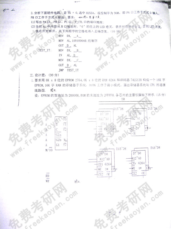 专业课考研经验 本站小编 FreeKaoyan 2018-01-22上海交通大学2000年考研真题-微型计算机原理应用