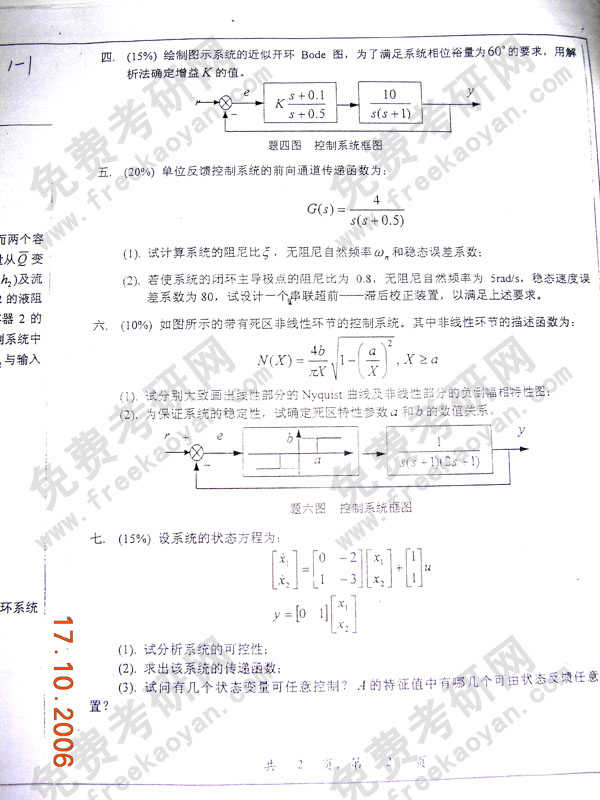专业课考研经验 本站小编 FreeKaoyan 2018-01-22上海交通大学2000年考研真题-自动控制理论