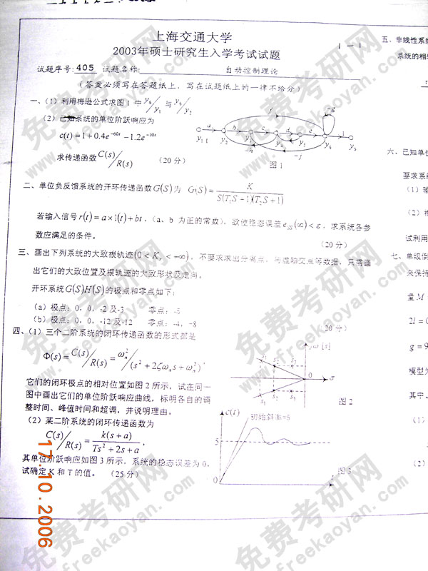 专业课考研经验 本站小编 FreeKaoyan 2018-01-22上海交通大学2001年考研真题-自动控制理论