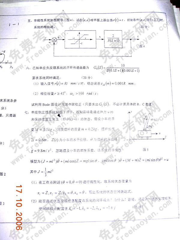 专业课考研经验 本站小编 FreeKaoyan 2018-01-22上海交通大学2001年考研真题-自动控制理论