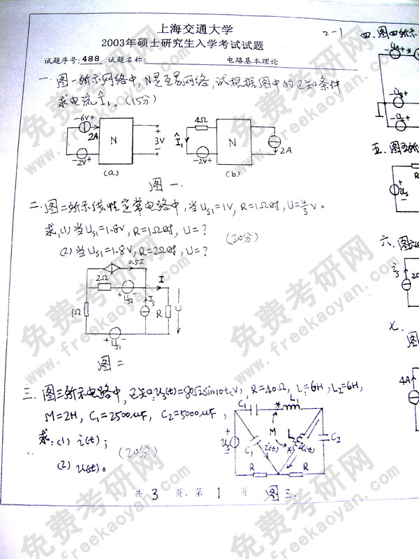 专业课考研经验 本站小编 FreeKaoyan 2018-01-22上海交通大学2002年考研真题-电路基本理论含实验