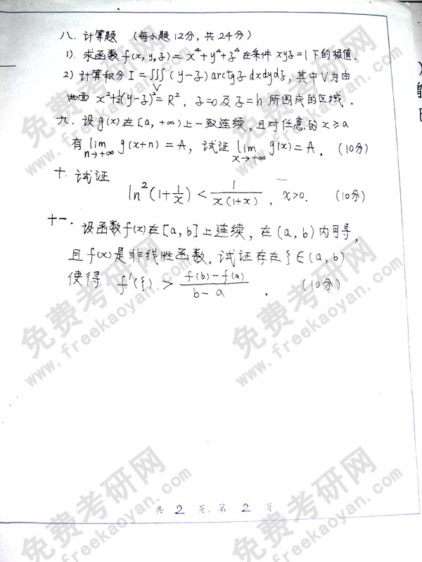 专业课考研经验 本站小编 FreeKaoyan 2018-01-22上海交通大学2002年考研真题-数学分析