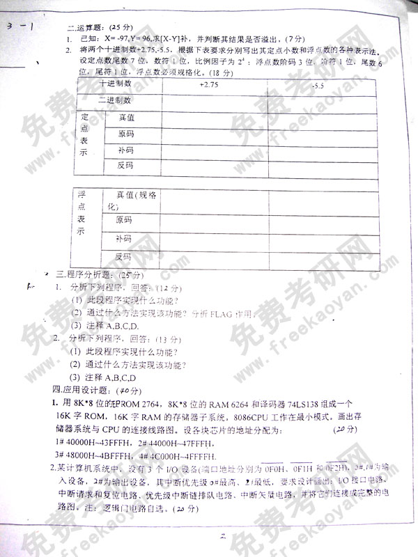 专业课考研经验 本站小编 FreeKaoyan 2018-01-22上海交通大学2001年考研真题-微型计算机原理应用