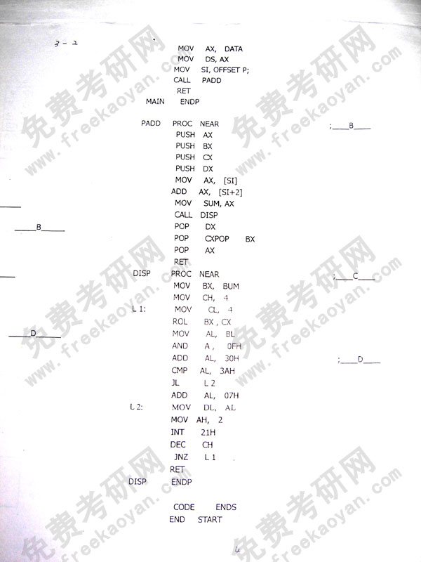 专业课考研经验 本站小编 FreeKaoyan 2018-01-22上海交通大学2002年考研真题-微型计算机原理应用