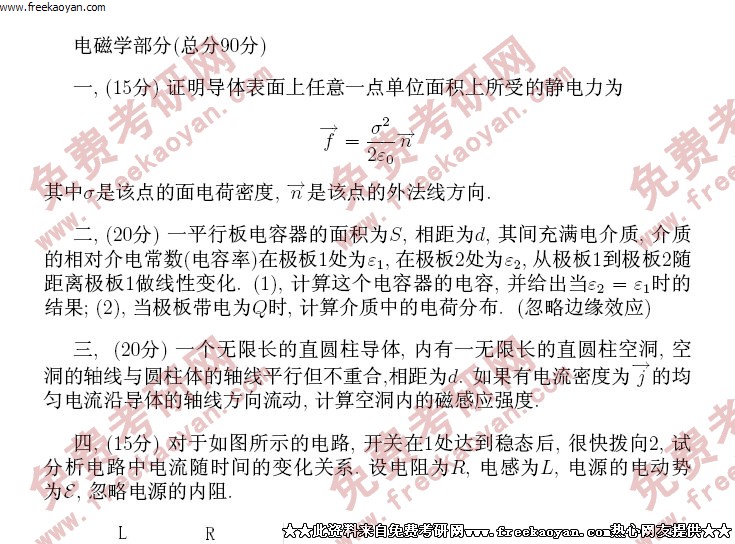 专业课考研经验 本站小编 FreeKaoyan 2018-01-22上海交通大学2004年考研真题-物理专业课
